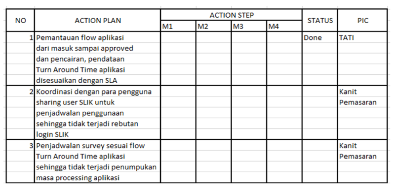 Proses pengajuan pembiayaan seharusnya sesuai SLA, penarikan SLIK di hari yang sama, jadwal survey segera, kemudian pengerjaan dan persetujuan dapat dilakukan dengan cepat